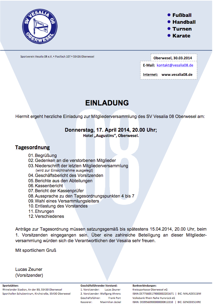 Am heutigen Abend findet um 20:00 Uhr die jährliche Mitgliederversammlung der Vesalia im Hotel Augustin statt. Die Mitglieder sind herzlich eingeladen an der Veranstaltung teilzunehmen.