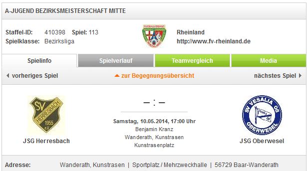 Am Samstag, 10.05.2014 reist unsere A-Jugend am 19. Spieltag in der Bezirksligameisteschaft zur JSG Herresbach. Zu diesem Spiel wird ein Bus eigesetzt mit dem Spieler und Fans gemeinsamt das Spiel anfahren.
